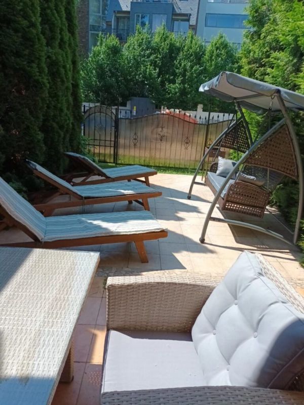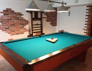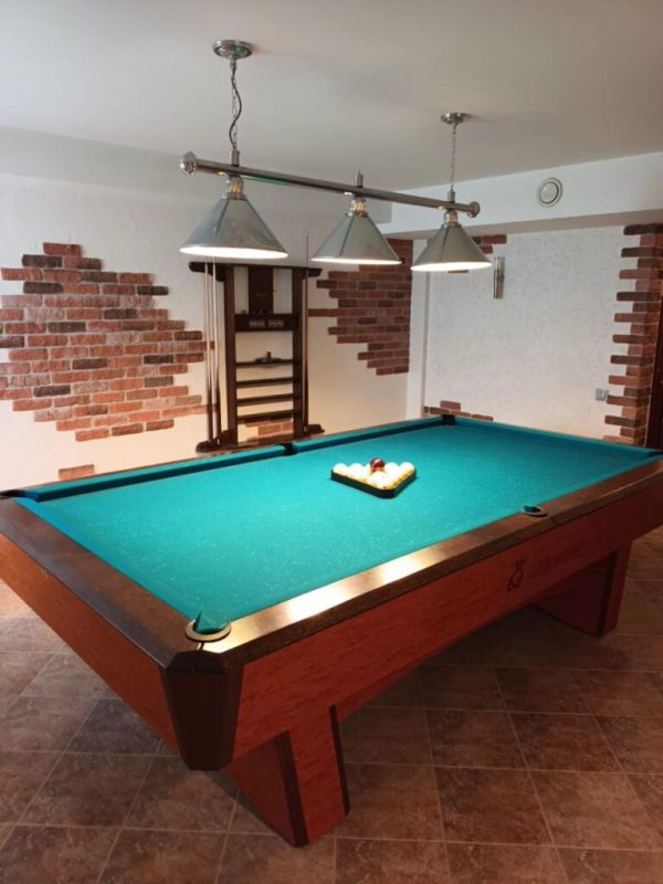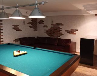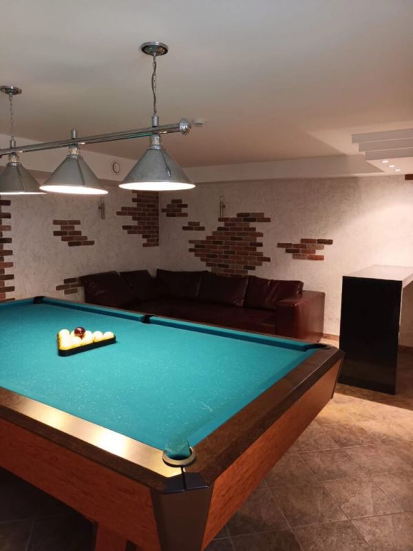 со современным интерьером, отдельным входом и террасой. На цокольном этаже – бильярдная, на первом – кухня, холл, а на втором и третьем –