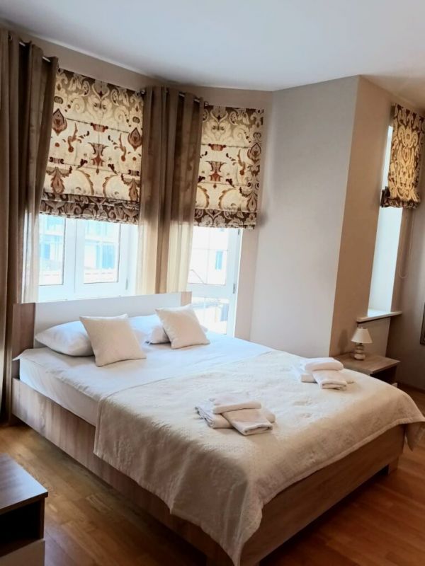 по 2 спальни и санузлы с ванной. Апартаменты оснащены необходимой техникой: есть электроплита, духовой шкаф, электрочайник, кондиционер, стиральная машина, телевизор-ЖК. В числе услуг – безлимитный интернет
